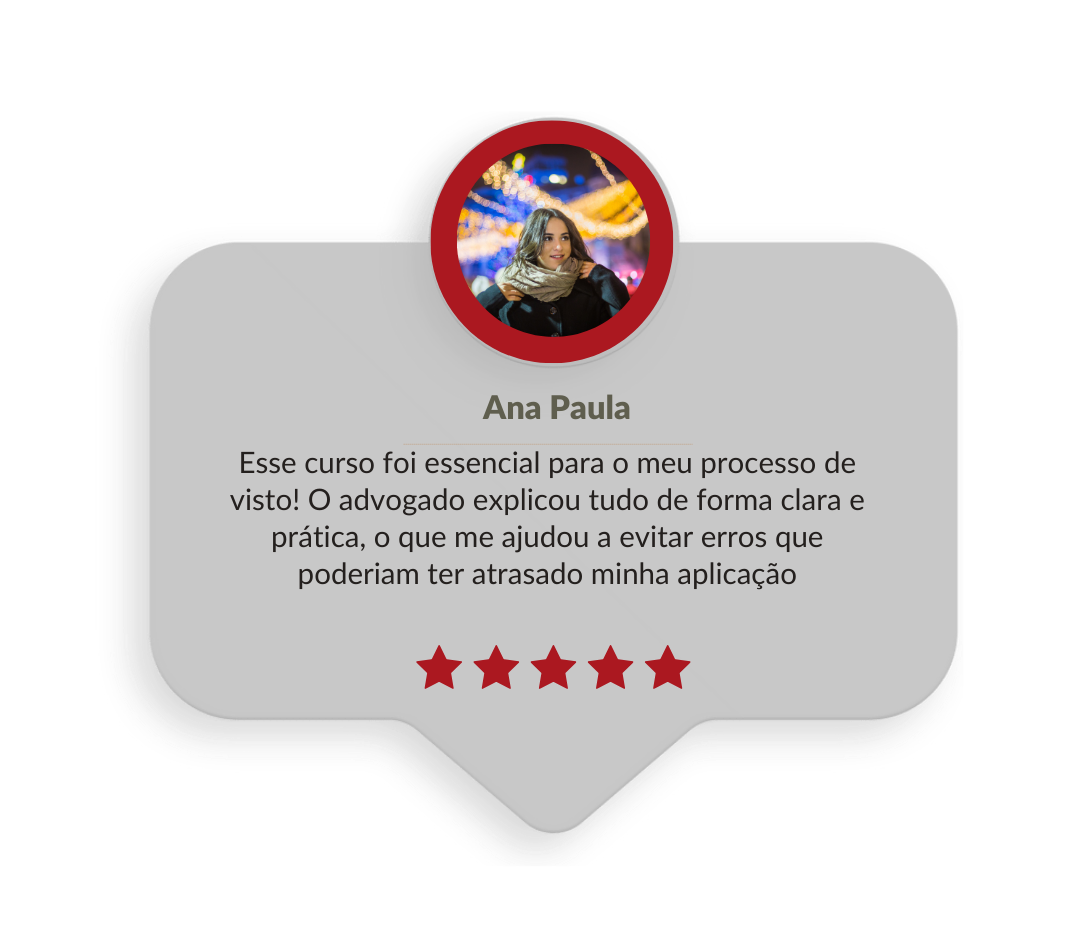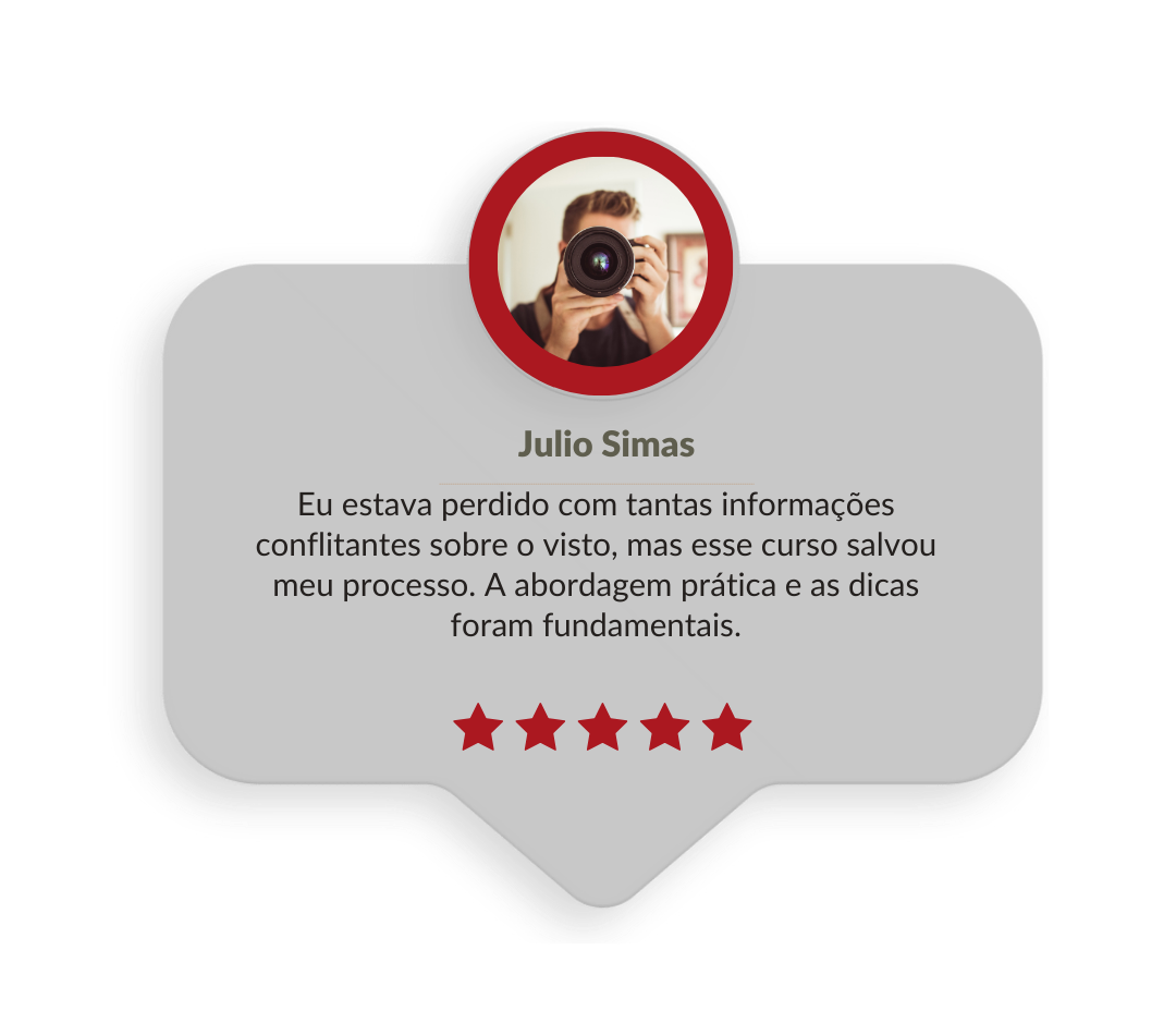 Todo conteúdo é entregue de forma online, por meio de vídeos, materiais didáticos e recursos interativos. Você terá acesso 24 horas por dia, 7 dias por semana, para aprender a aplicar o seu visto no seu próprio rítmo.